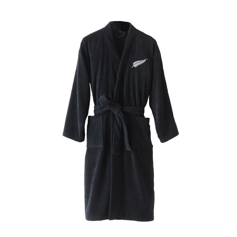 Peignoir à poches et col kimono, logo ALL BLACKS brodé pour les fans de l’équipe de rubgy. Confortable et respirant grâce au coton en micro-bouclette garantissant une absorption parfaite.